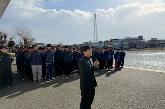 また、現場を代表して二見監督、ボート部門・岩本主将、カヌー部門・大久保主将がそれぞれ新年の挨拶に立ち、今シーズンにかける決意と抱負を力強く宣言いたしました。